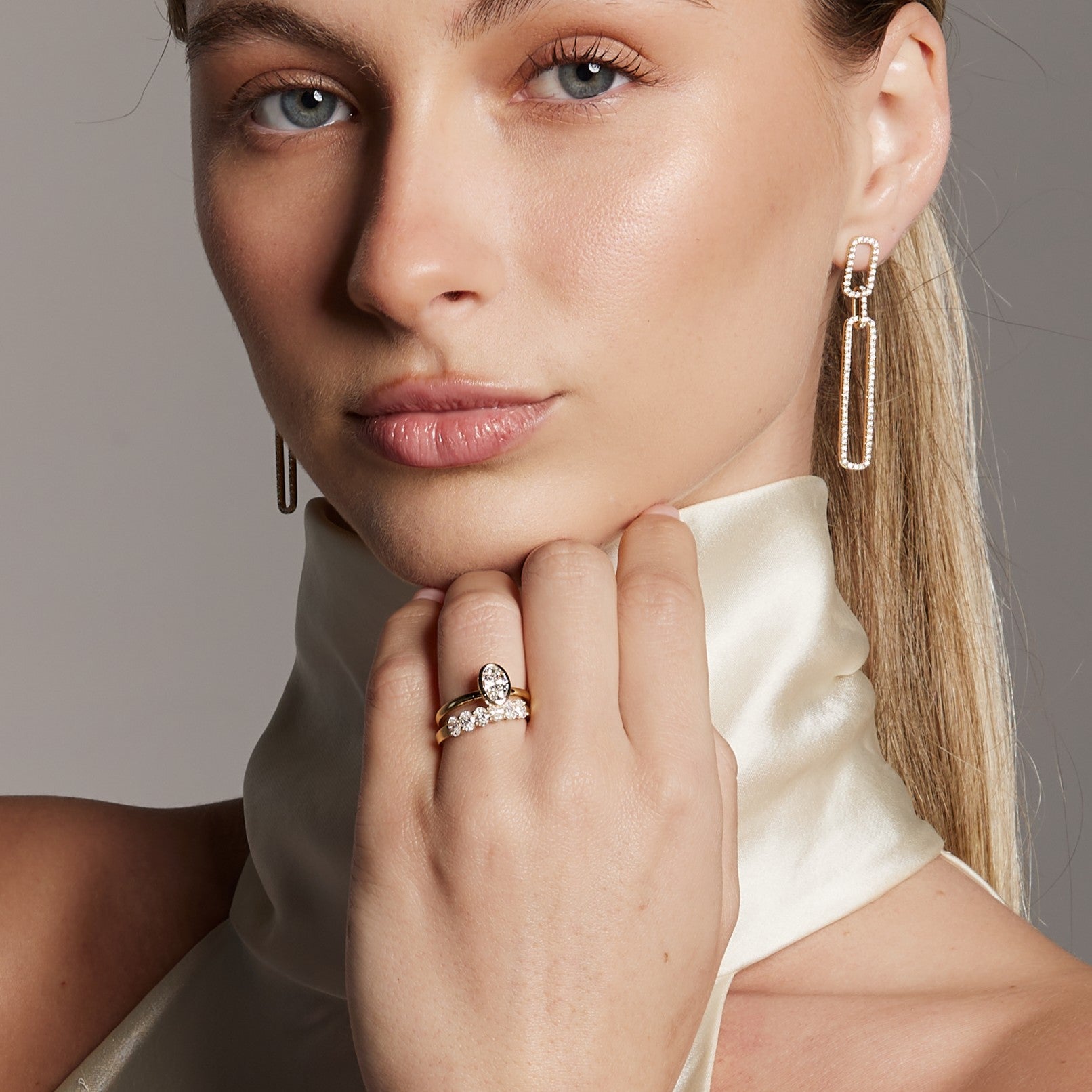 This ring is available in-store or can be custom made in any diamond shape or gold colour.