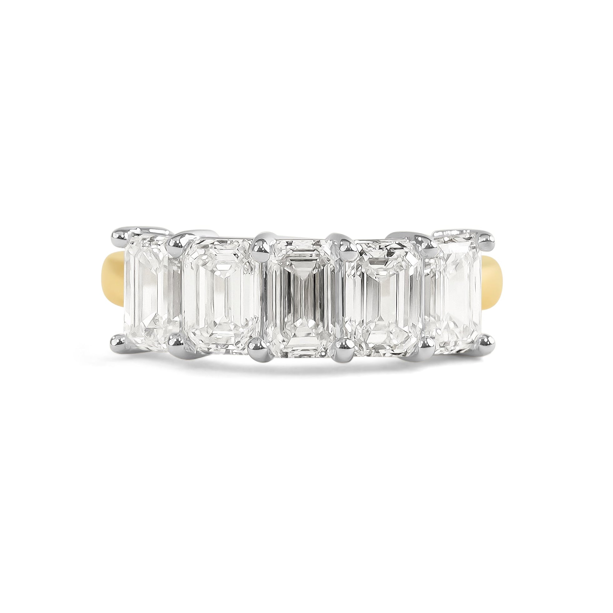 A striking display of symmetry and brilliance, this five-stone diamond ring features 2.52ct of emerald cut diamonds, F colour, VVS2–VS1 clarity, set in an elegant two-tone design of 18ct yellow and white gold. The timeless arrangement showcases each diamond’s clean lines and brilliance.