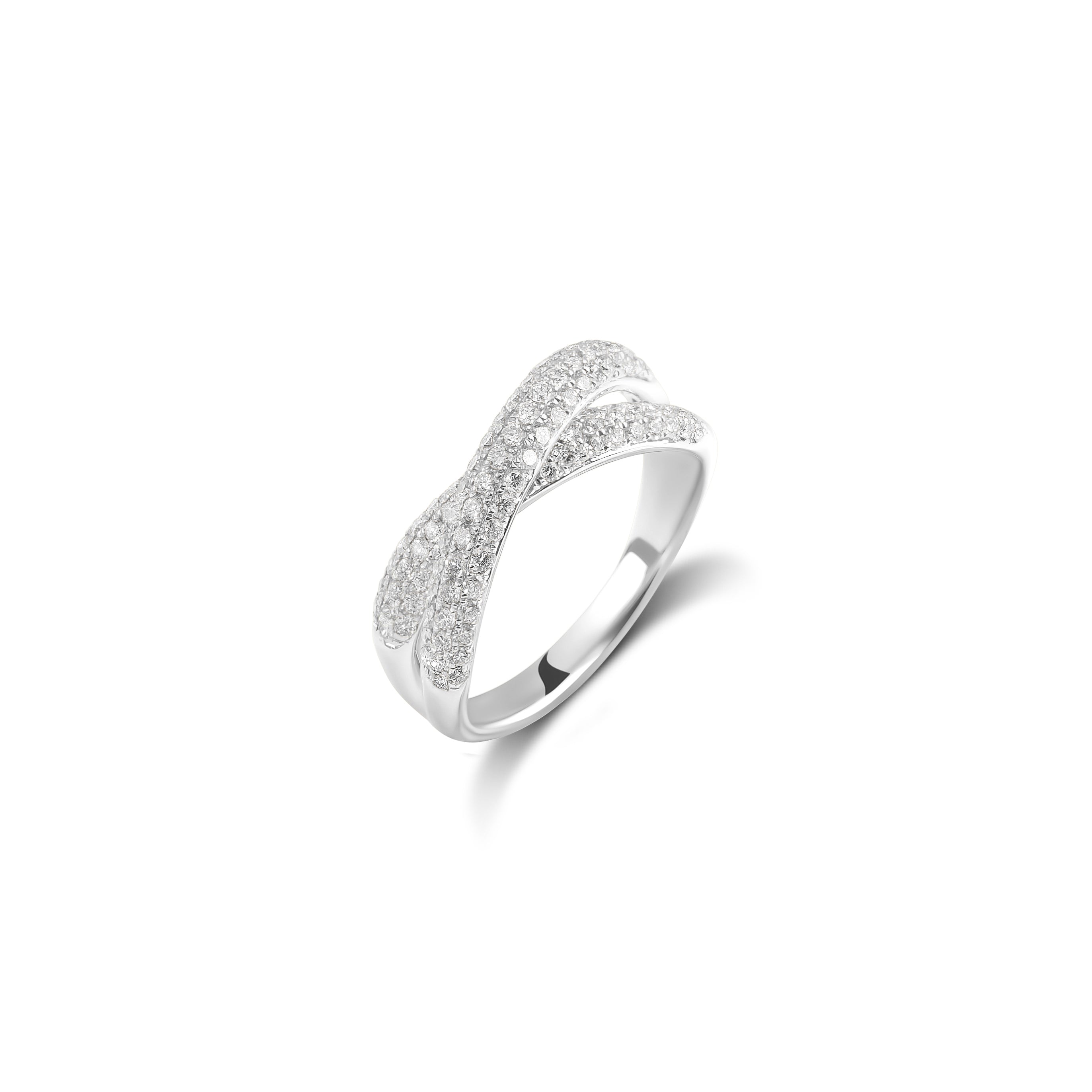 Crafted in 18ct white gold, this elegant crossover ‘X’ style ring features 107 round brilliant cut diamonds totalling 0.80ct. The pave-set diamond rows create a seamless flow of sparkle, crossing gracefully at the centre for a sophisticated and timeless look.