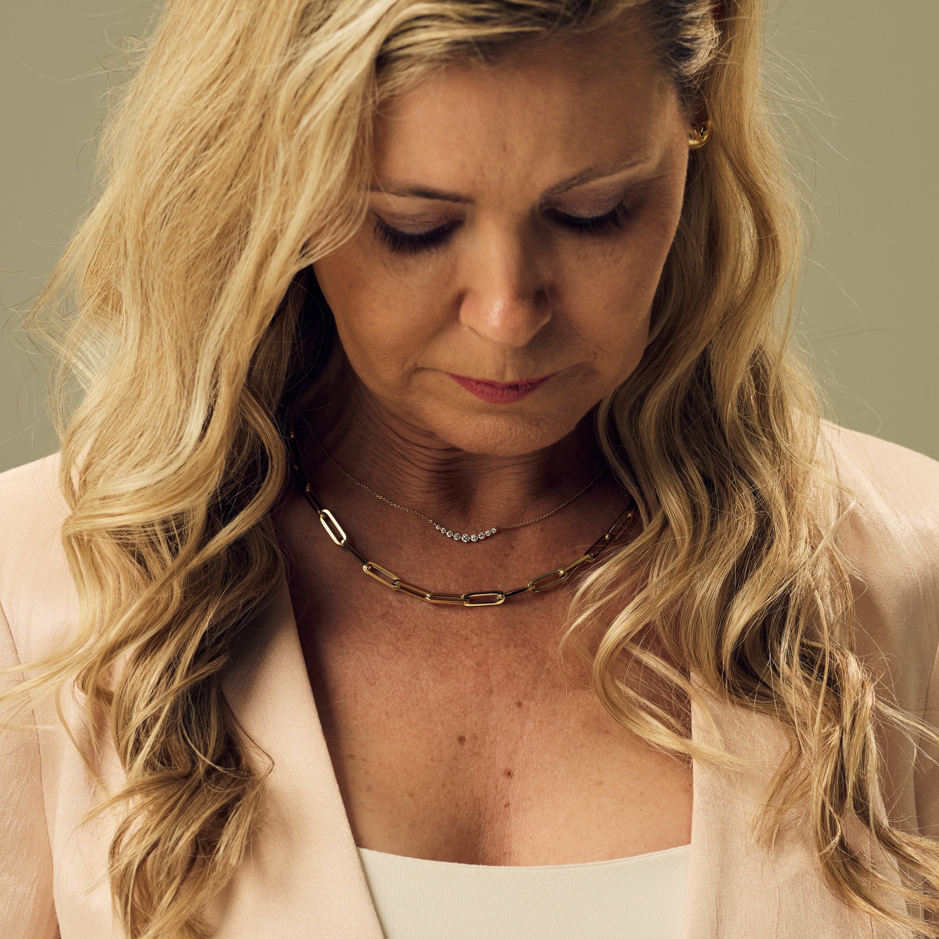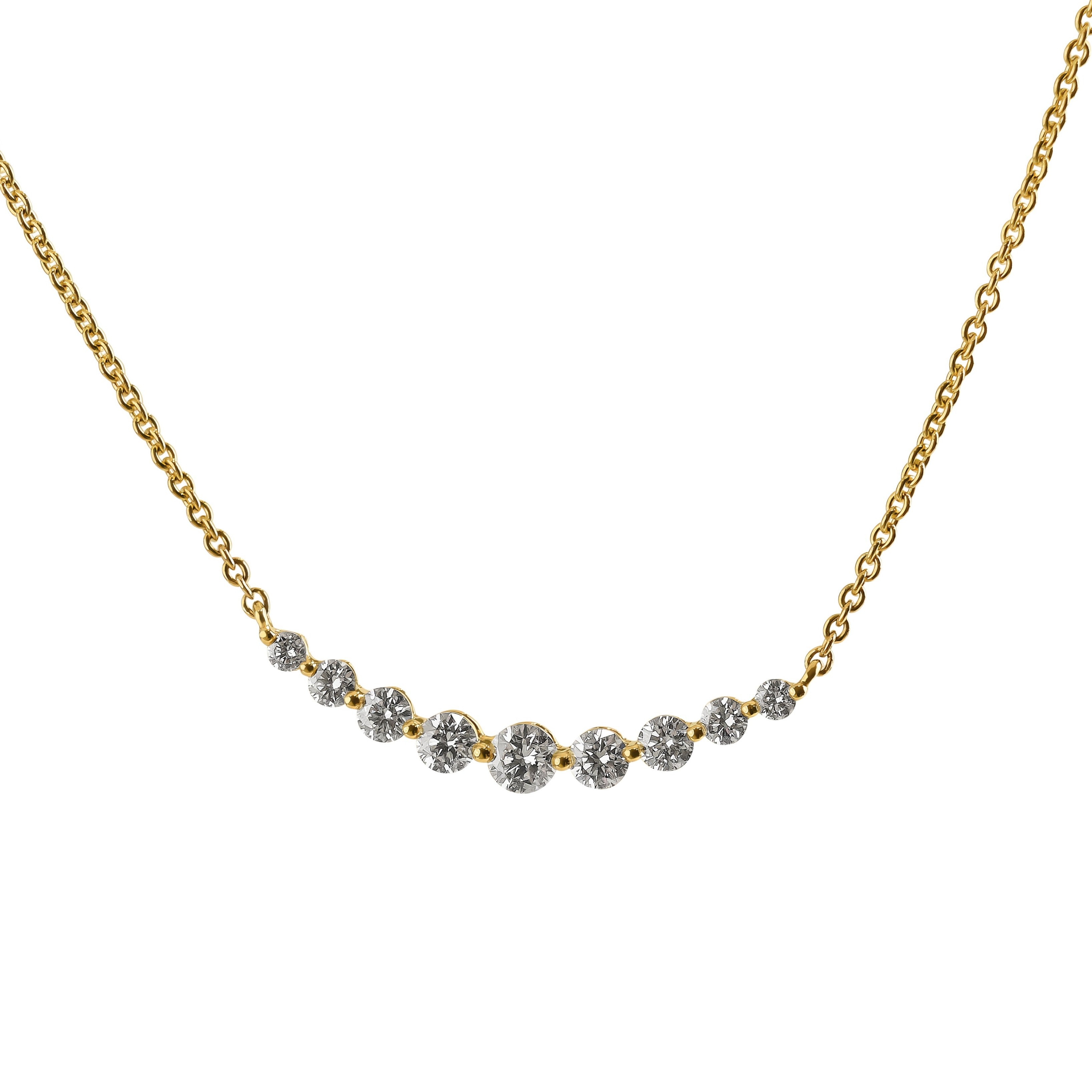 Delicate yet captivating, this 18ct yellow gold necklet features nine round brilliant cut diamonds totalling 0.41ct, gracefully spaced along a gentle curve for a refined, modern silhouette. The design sits beautifully on the neckline, adding a touch of understated luxury to any occasion.